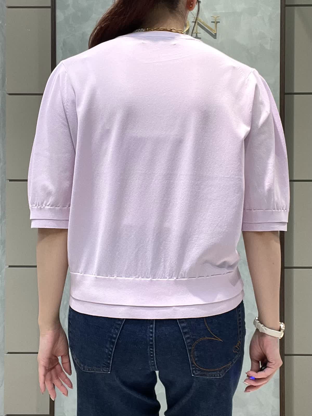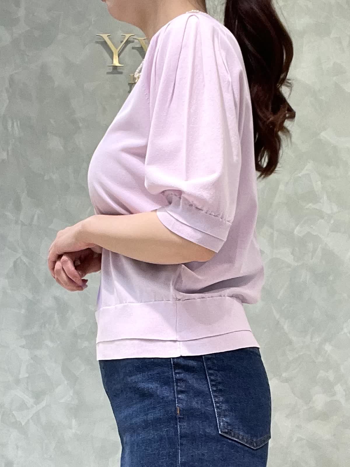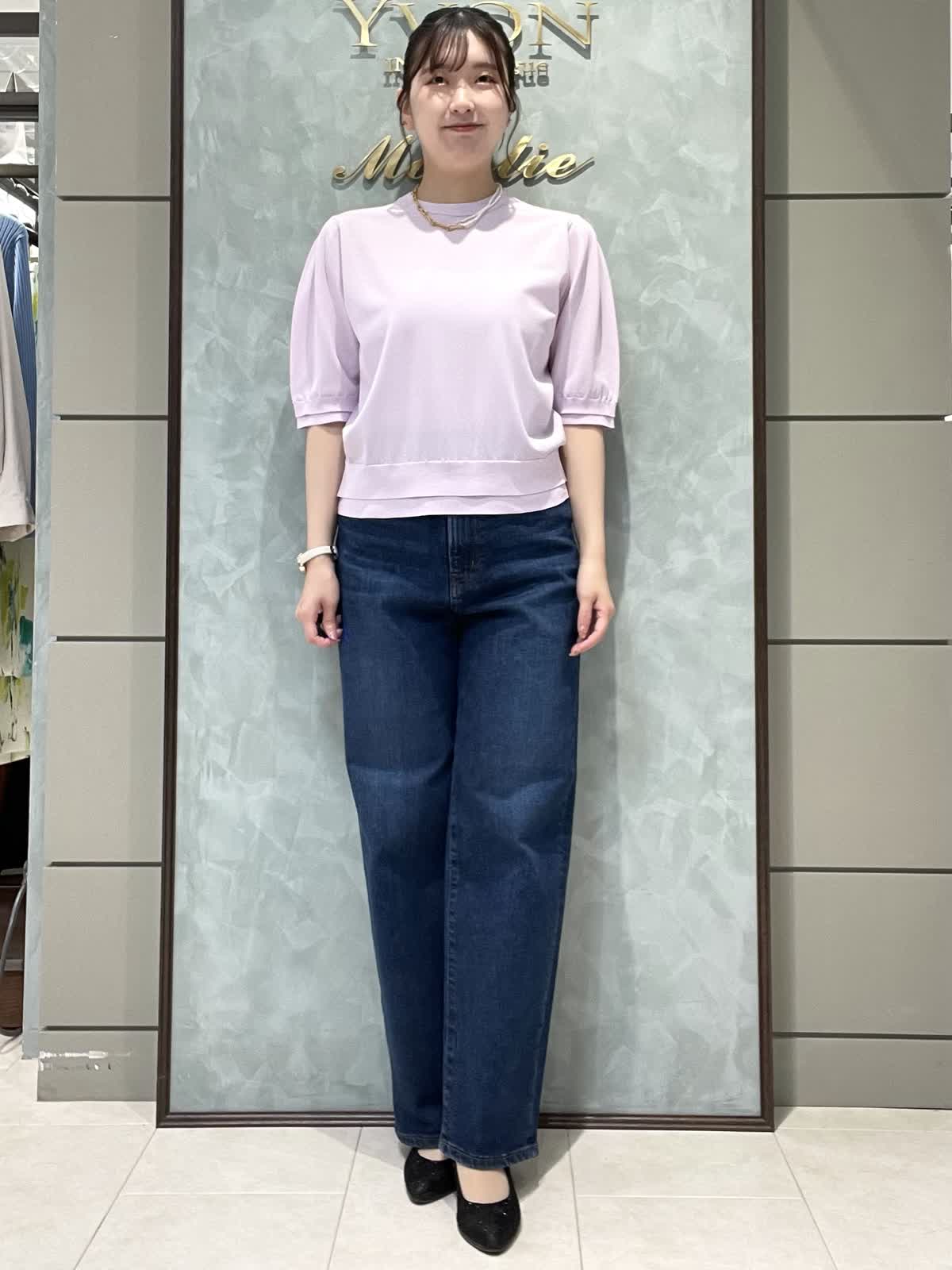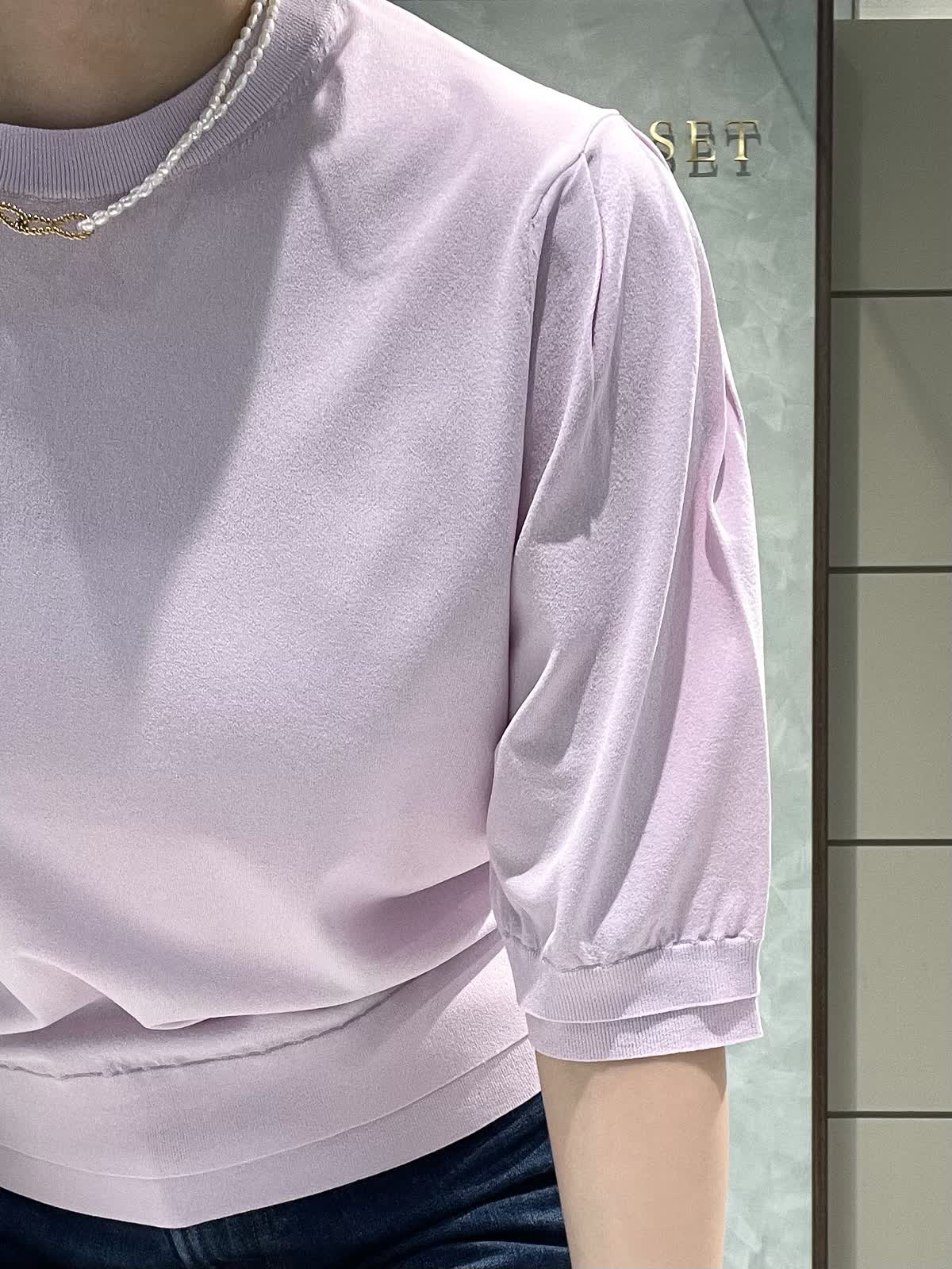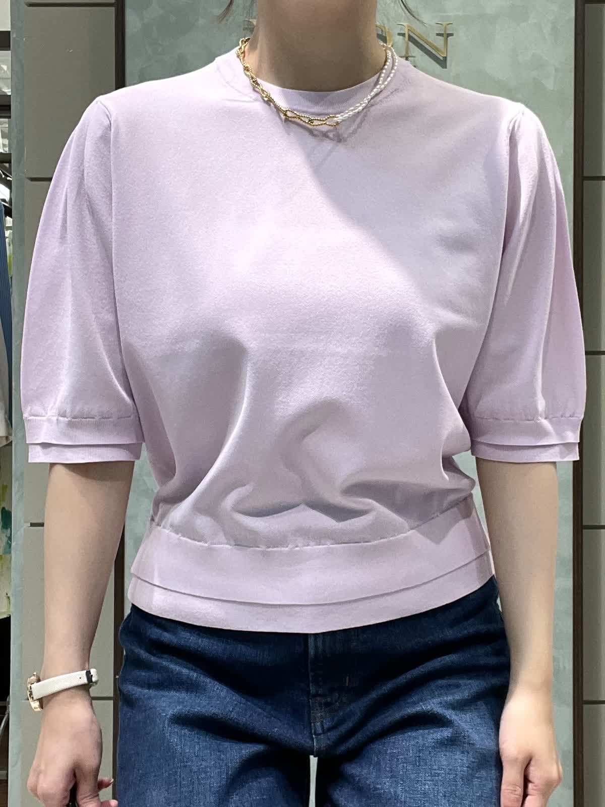 【着用サイズ】ニット:9号 パンツ:7号 シンプルで着やすいデイリースタイリングです。サラッと涼しいサマーニットはシワになりにくくイージーケアで楽なのでデイリーに大活躍!旅行にも◎袖口、裾が2段になっているのでシンプルすぎず1枚でオシャレに着れます。肘にかかる安心な袖丈、着丈はスッキリでパンツスカート選ばず合わせやすいです。透け感はそんなにないですが、薄手でラインは出やすいのでインナー着用をオススメします。カーヴィーデニムは、ストレッチがしっかり効いてるのでジャストのおサイズで選んで頂いて大丈夫です。ももから膝にかけて若干丸みのあるシルエットで、ももがスッキリ見えます。着丈は157センチでかかとくらいです。左右、後ろもポケットありです。