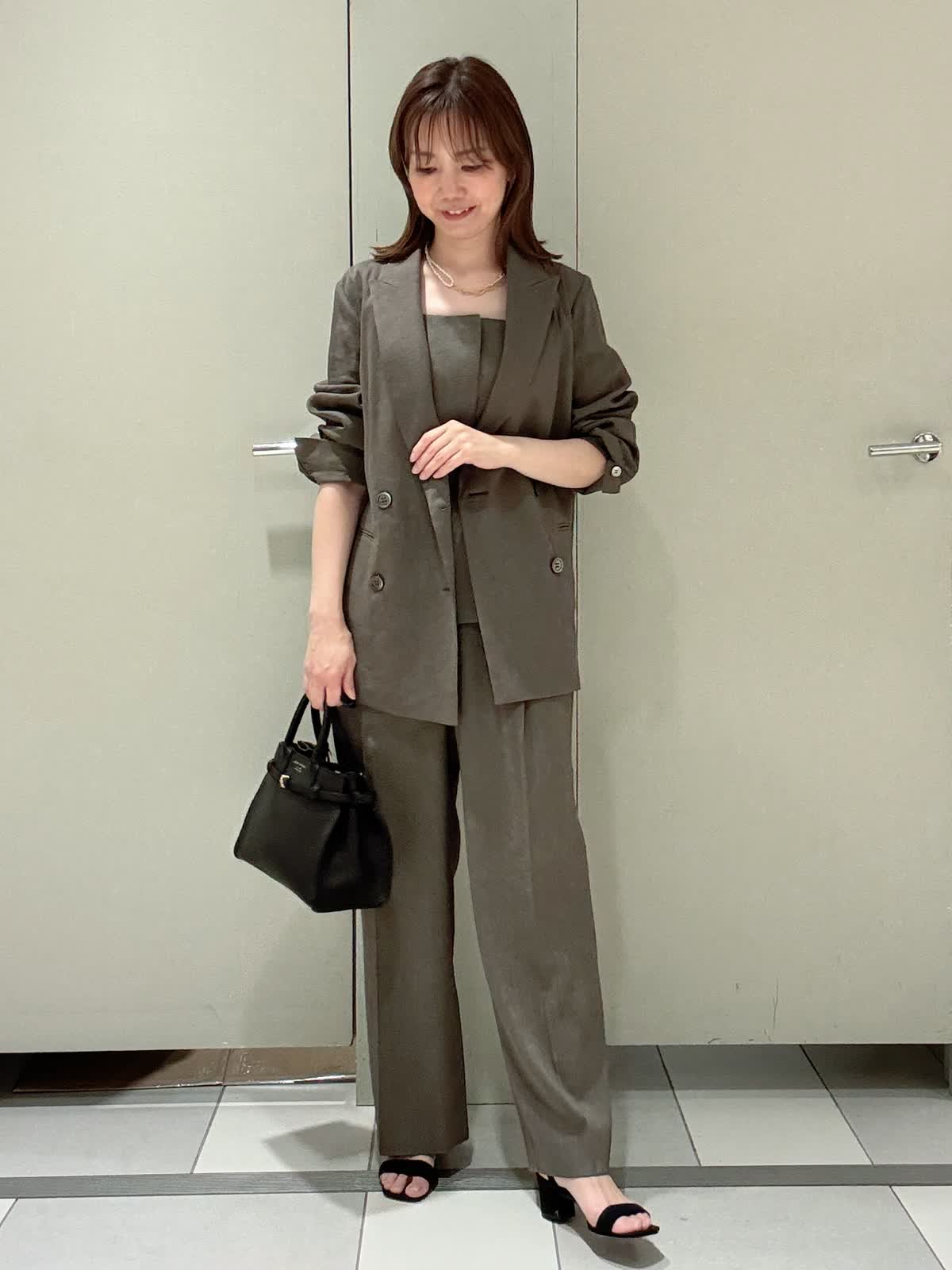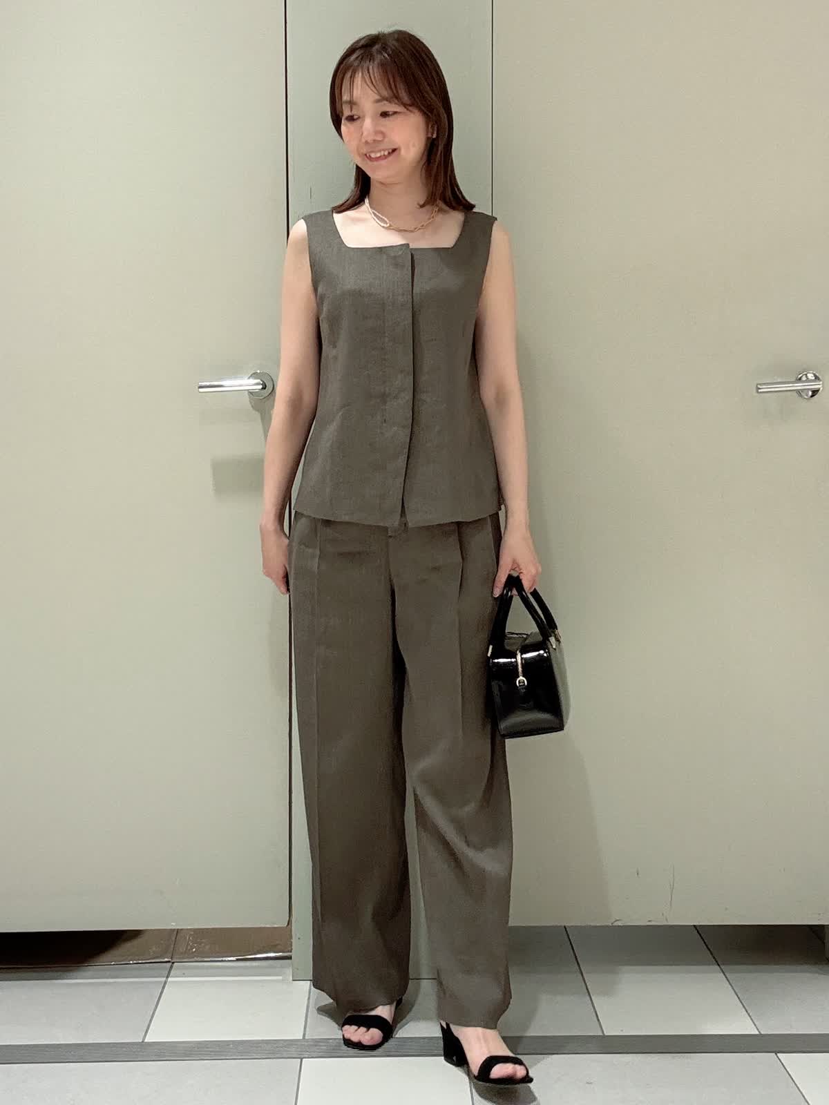 【着用サイズ】ジャケット・ジレ:9号 パンツ:7号【カラー】ジャケット、ジレ、パンツ:モカチャ 初夏のセットアップコーデ リネン素材ですので夏もお召しいただけます。セットアップでも単品でも着回しいだたけます。