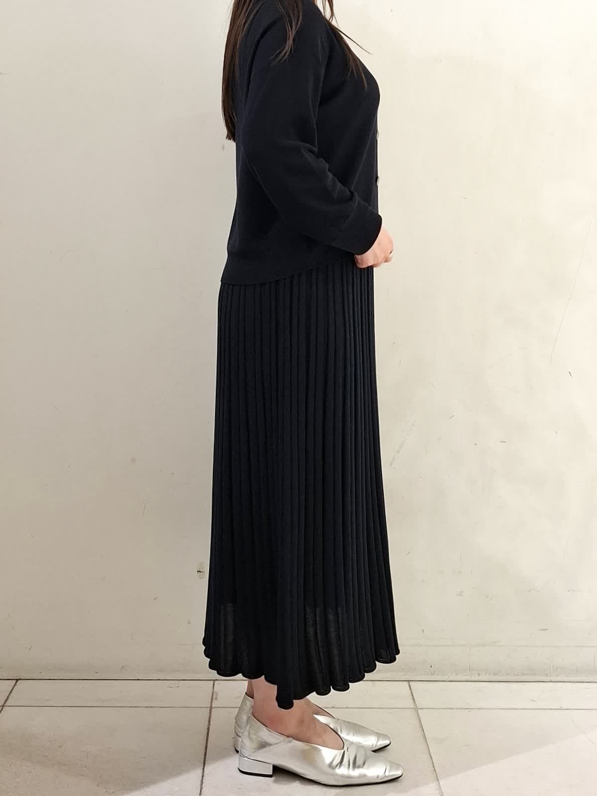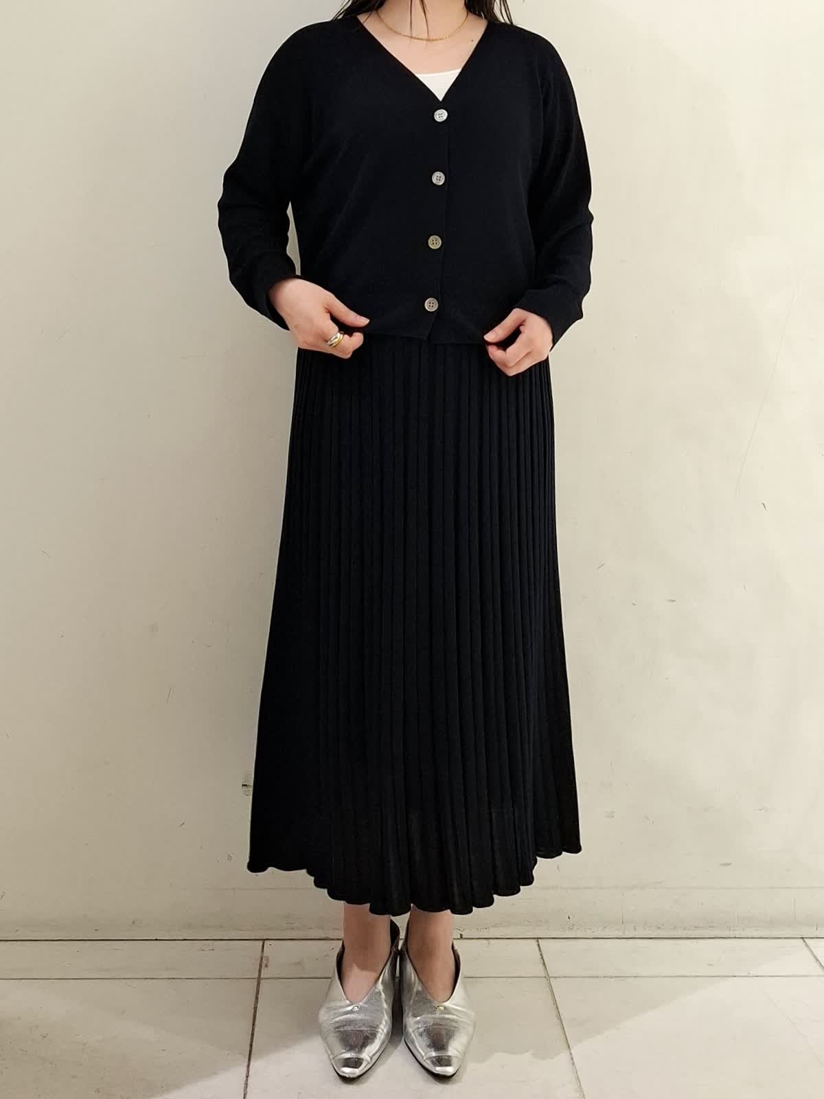 【着用サイズ】カーディガン:フリーサイズ ダークネイビー スカート:11号サイズ ダークネイビー 品よく華やぐセットアップコーディネート。カーディガンは、ゆったりとしたシルエットとベタつかずさらりとした肌触りで季節を問わず快適に着用できます。同素材のスカートは、柔らかいリブが体のラインを拾わずスッキリ見えます。長さが欲しい時はワンサイズ上げていただくのがおすすめです!