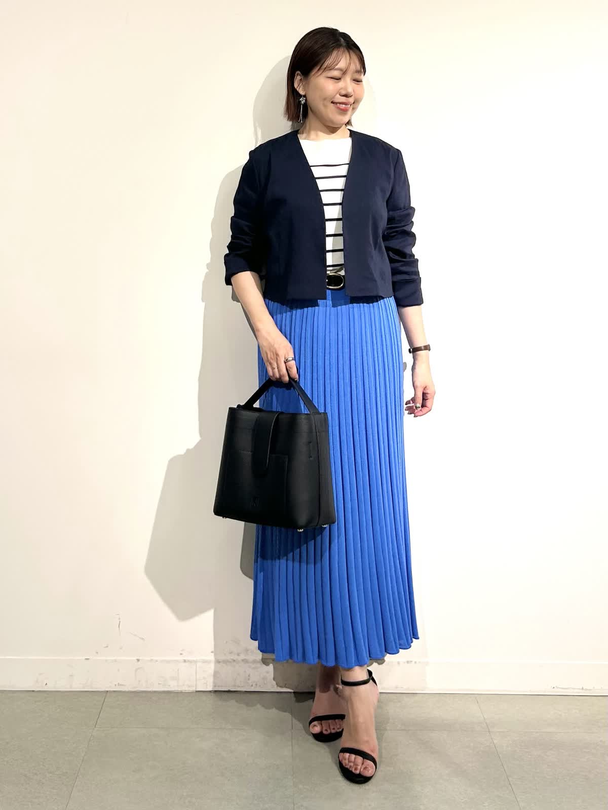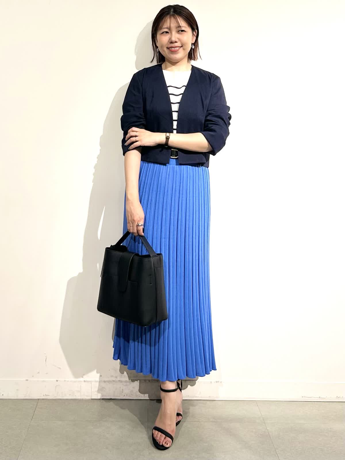 【着用カラー】ニット:ボーダー ジャケット:ネイビー その他全てブルー