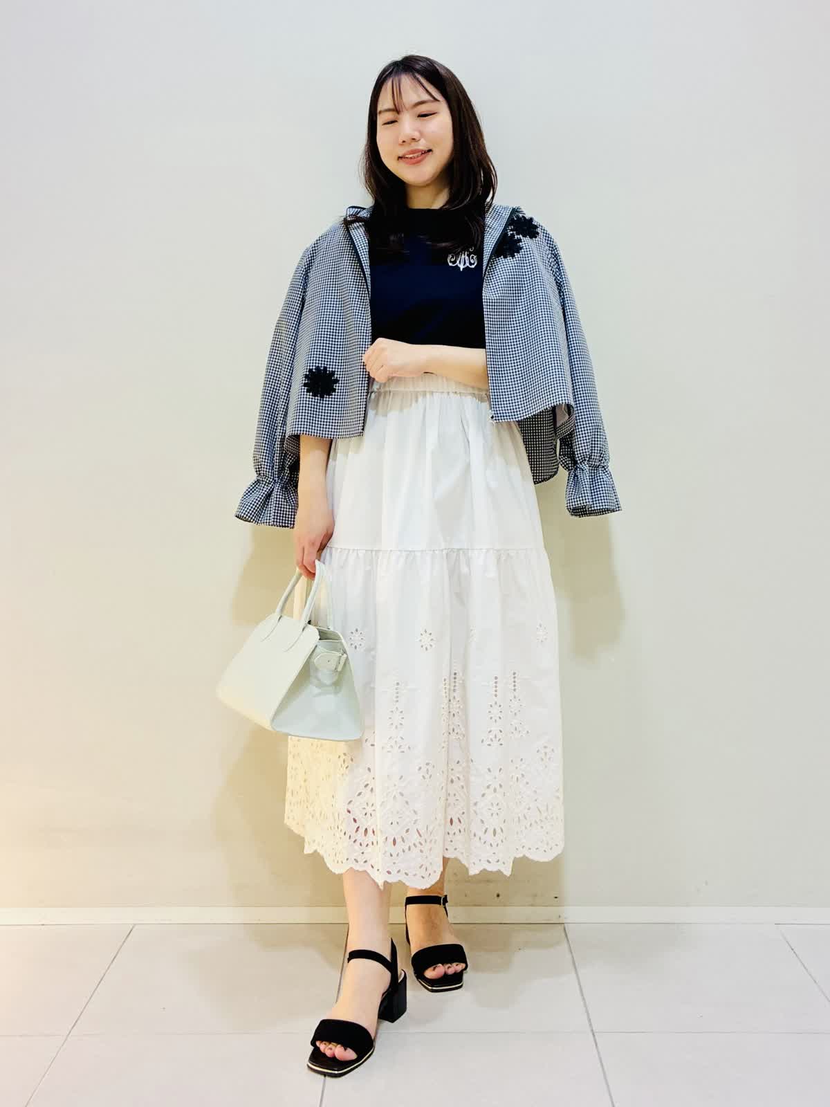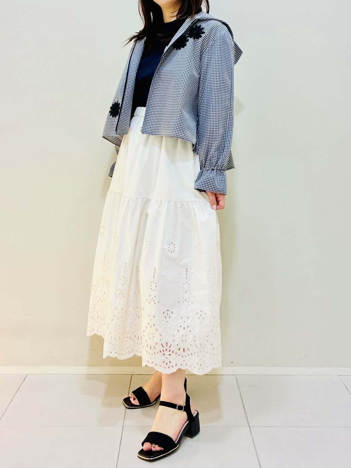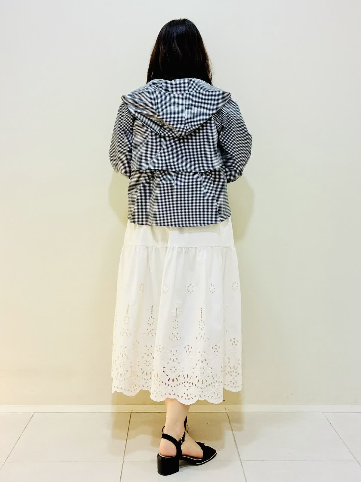 【着用サイズ】 パーカー:格子:9号サイズ カットソー:ネイビー:9号サイズ スカート:アイボリー:9号サイズ バッグ:オフホワイト 『お出かけコーデ』 軽い羽織でワンピースやスカートに相性バッチリです。 カットソーは後ろファスナーでスッキリしたラインなのでウエストアウトもおすすめです。 スカートは総ゴムで着心地も良く裾のレースがかわいいです。 バッグはショルダーにもなるタイプです。