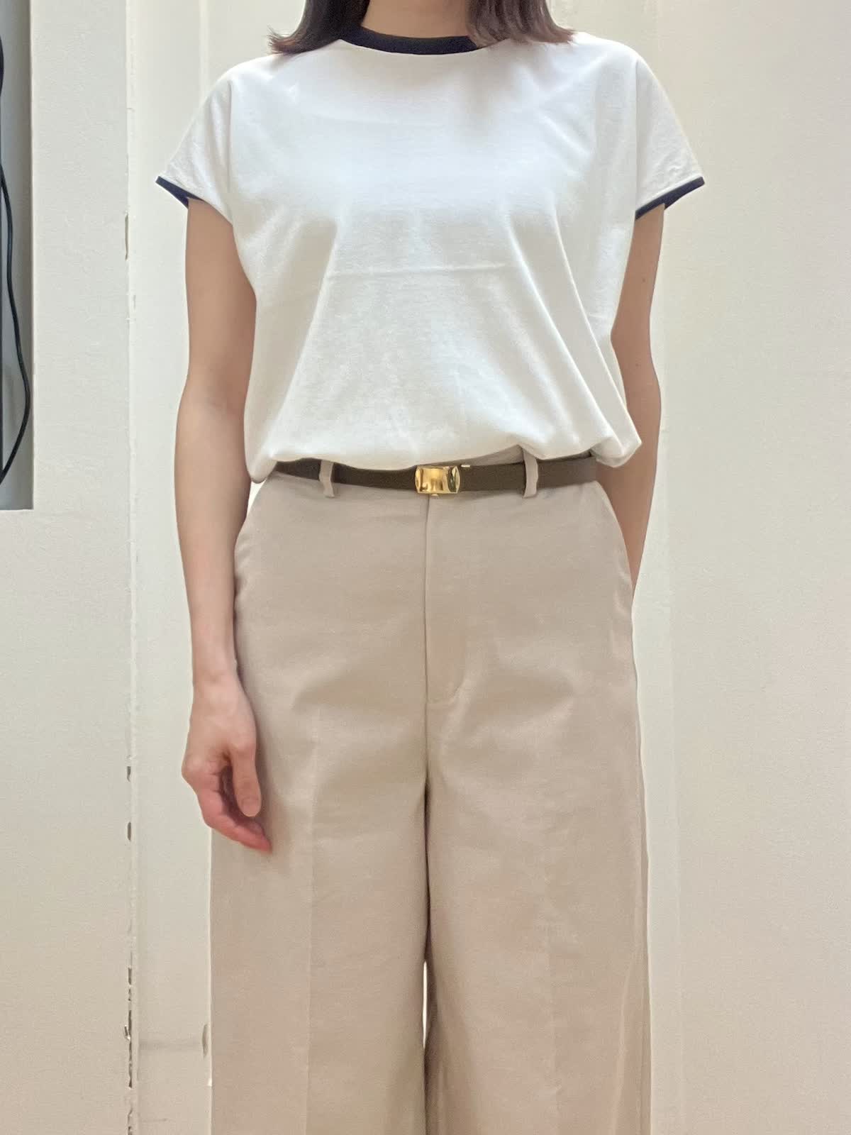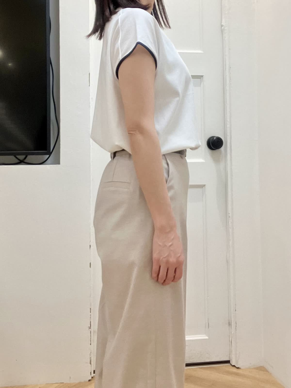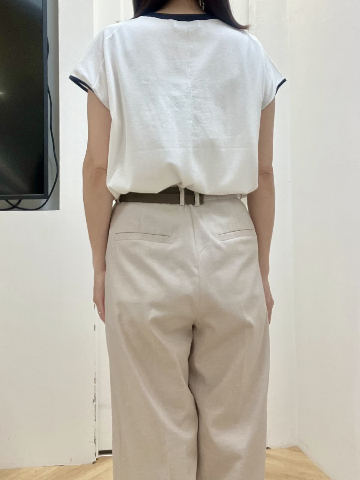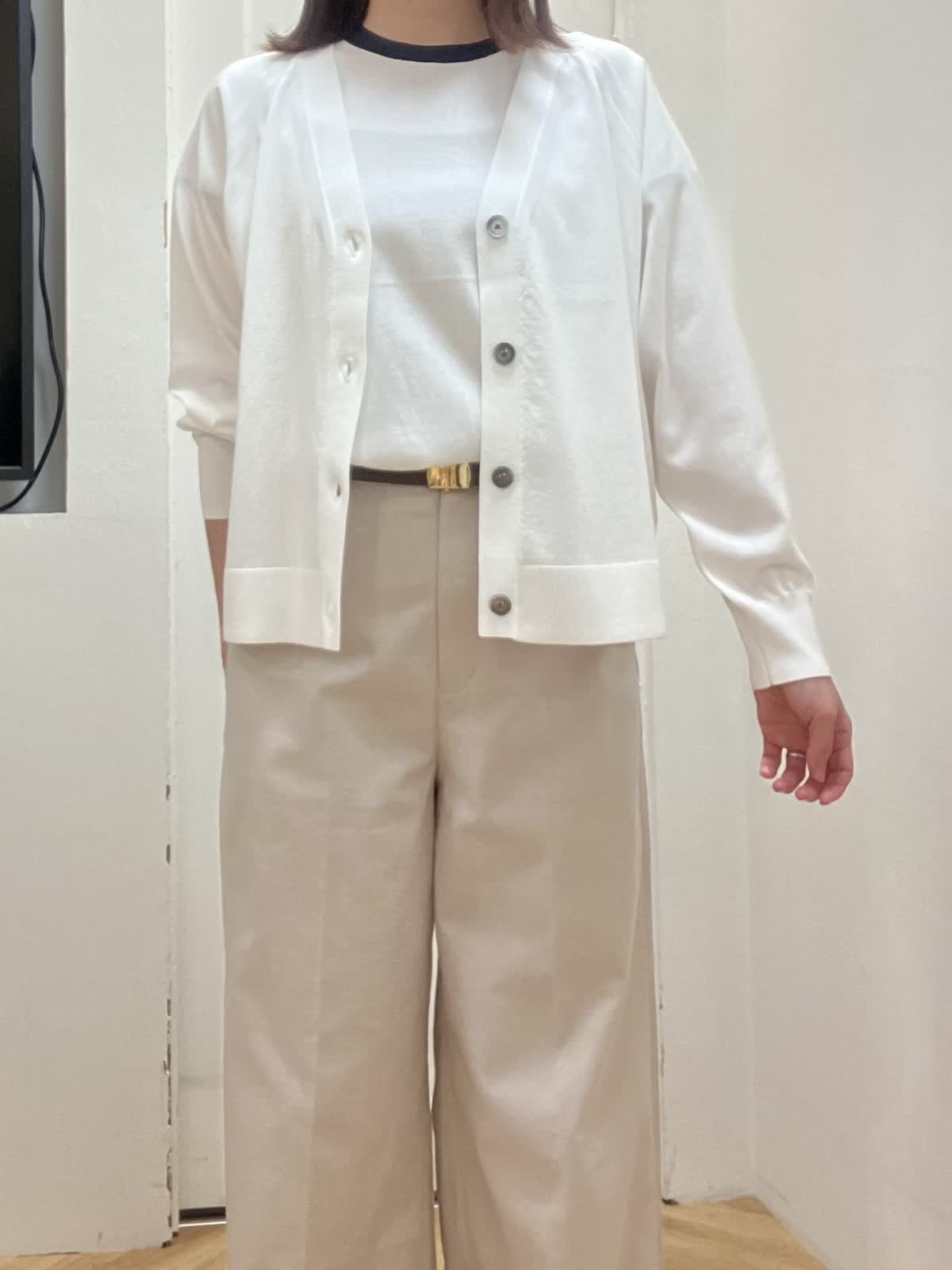 【着用サイズ】全て9号 【着用カラー】ニット:オフホワイト パンツ: ベージュ 初夏の通勤スタイル サラッと快適な着心地のニットは夏場の冷房・日焼け対策にも◎ 白のプルオーバーだけ配色になってます。単品でも着回しが効くのでアンサンブルでおすすめです。 パンツは綿麻混で夏まで快適に履ける軽い履き心地。接触冷感/UVカット/速乾性の機能性とセミワイドの美シルエットです。