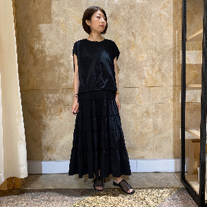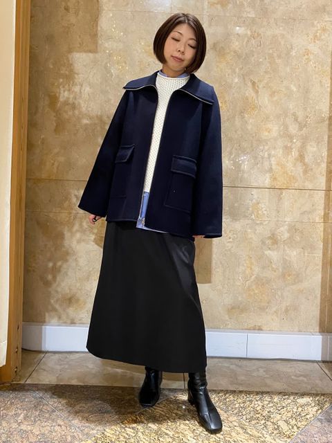 下半身のボリュームをカバーできるコーディネートが中心です。