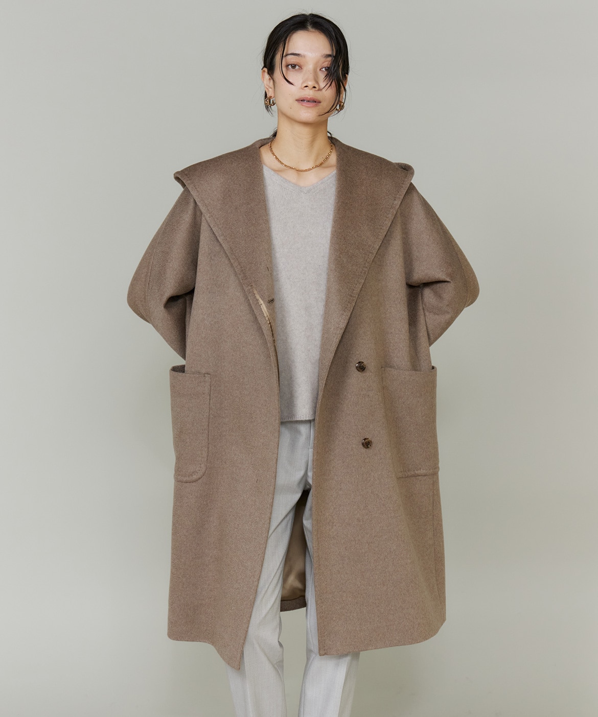 《大きいサイズ》カシミヤフーデットコート《CONTESSA》