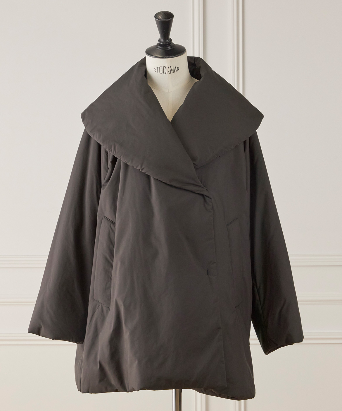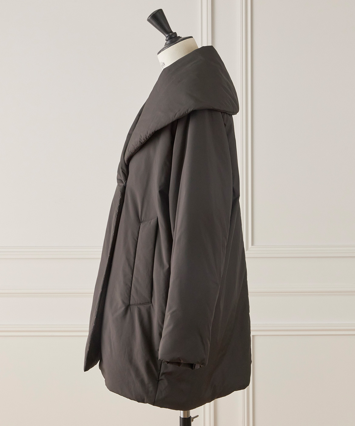 《大きいサイズ》ショールカラーミドル丈中綿コート