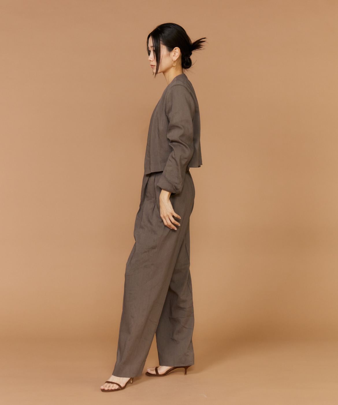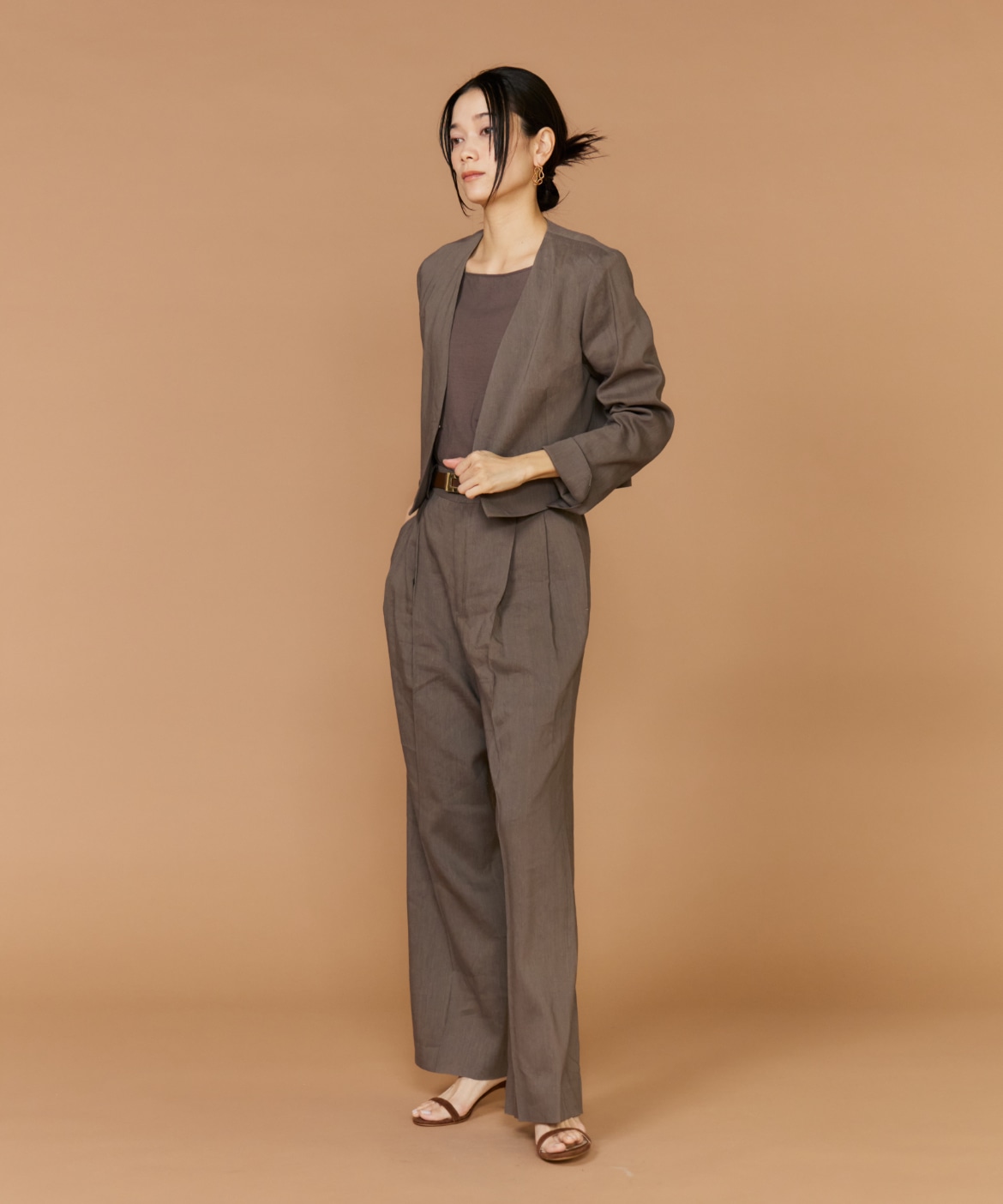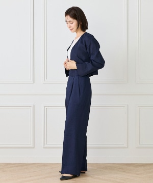 トレンド感のあるスペンサージャケット。前中心突合せのVネックが、より今年らしく着て頂けるよう仕上げています。エレガントなシルエットがリュクスな印象を醸し、都会的な品の良さを確立します。コンパクトな丈感なので、スタイルアップ効果も期待できます。カフスを折り上げてこなれ感のある着こなしも素敵です。同素材のパンツとのセットアップが可能で、よりモードなスタイリングが完成します。内側の 配色のパイピングが存在感があり、高見えさせてくれます。