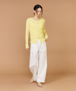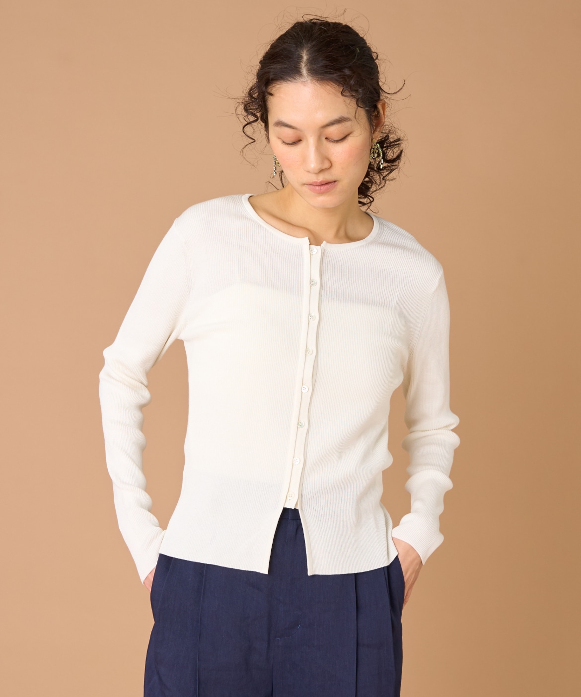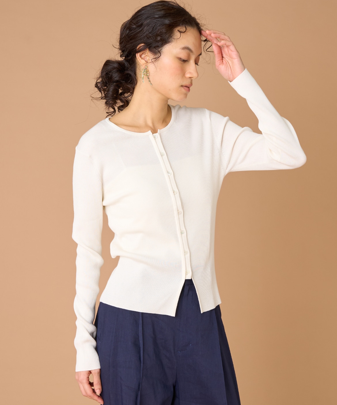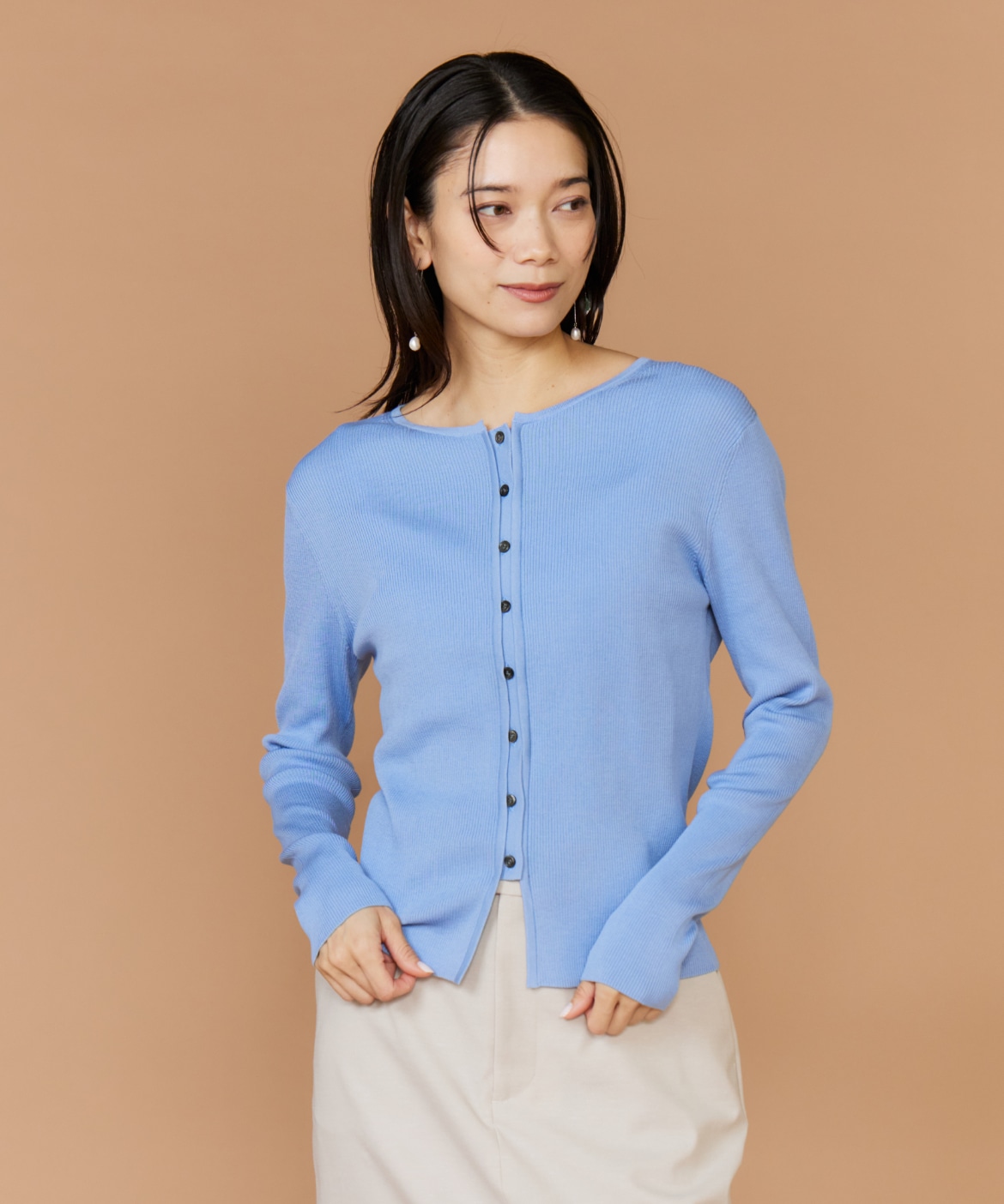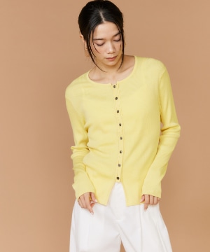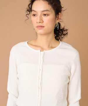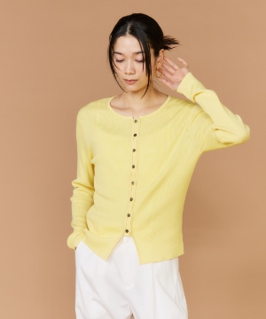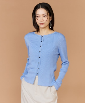 《大きいサイズ》シルクコットンクルーネックリブカーディガン