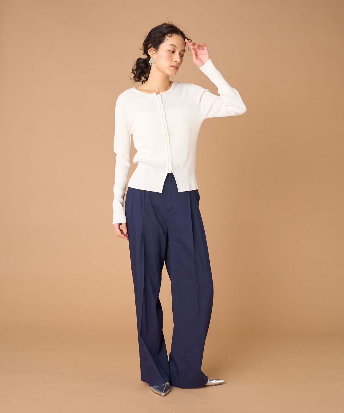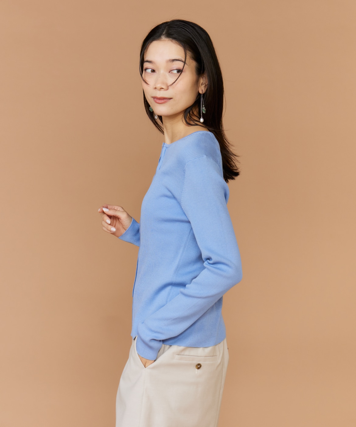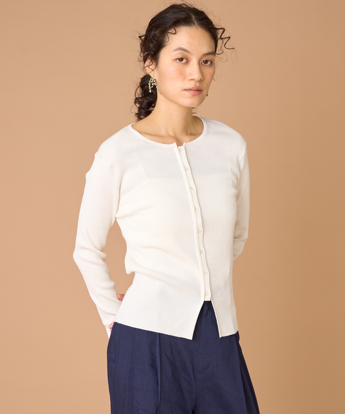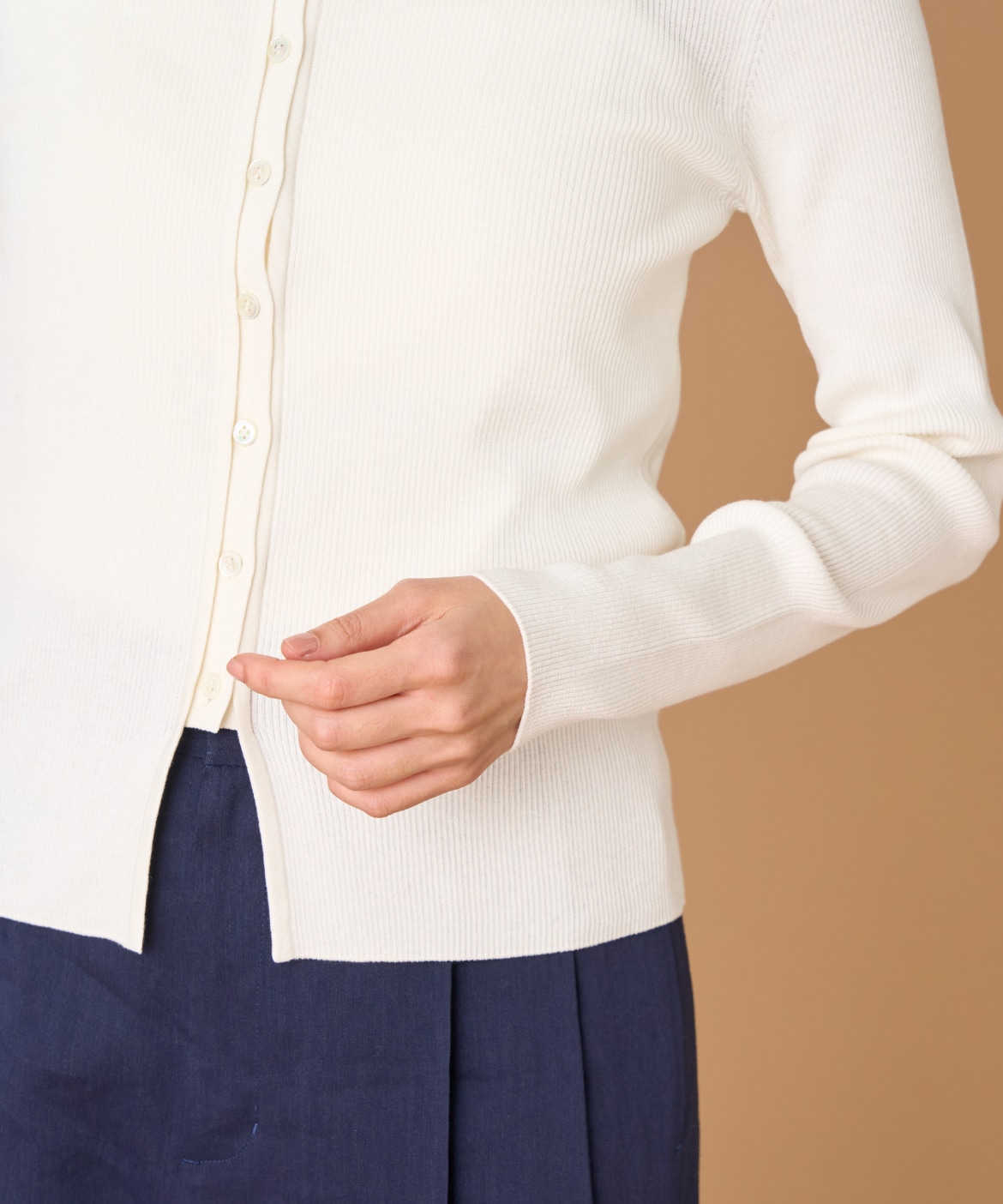 《大きいサイズ》シルクコットンクルーネックリブカーディガン