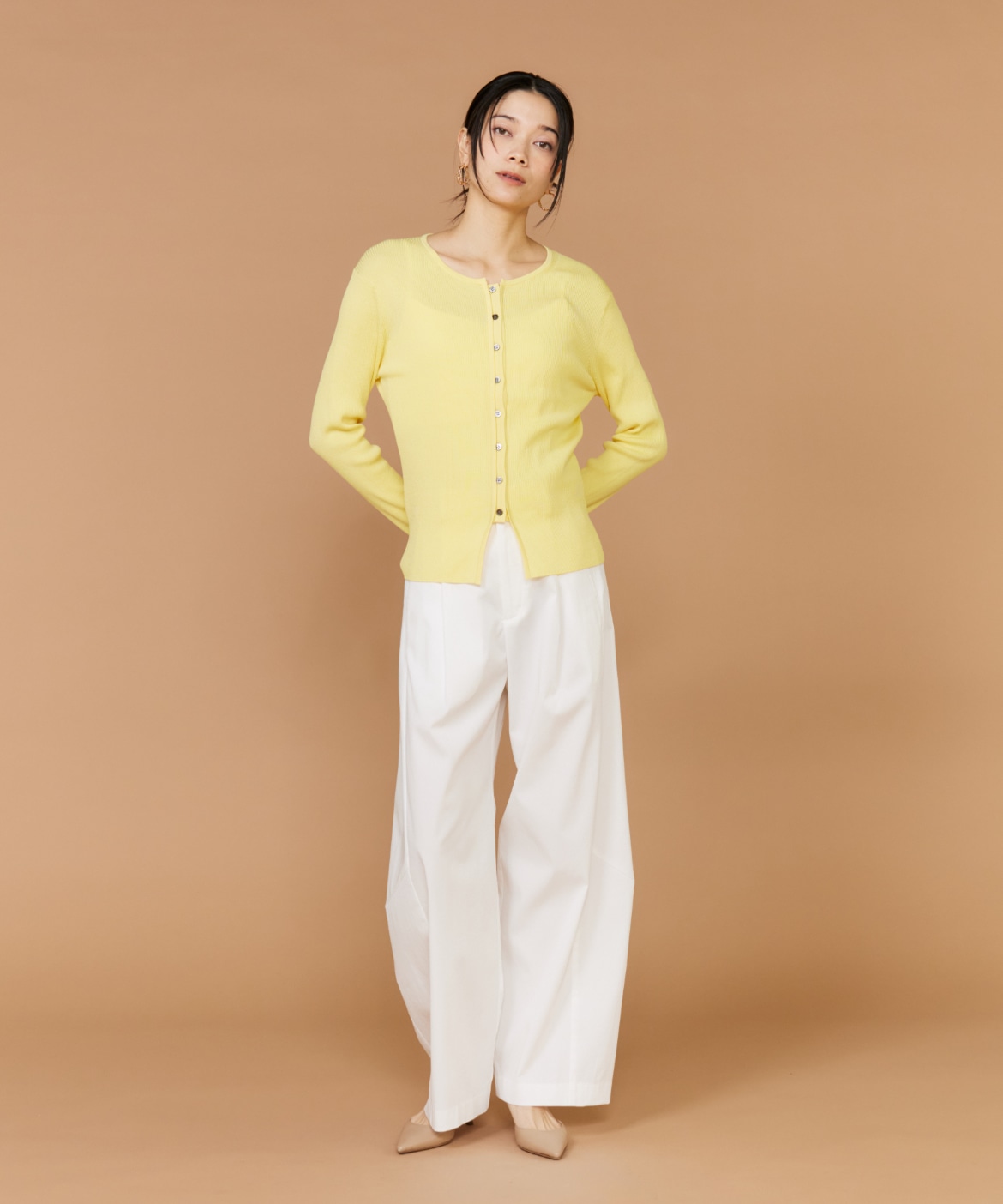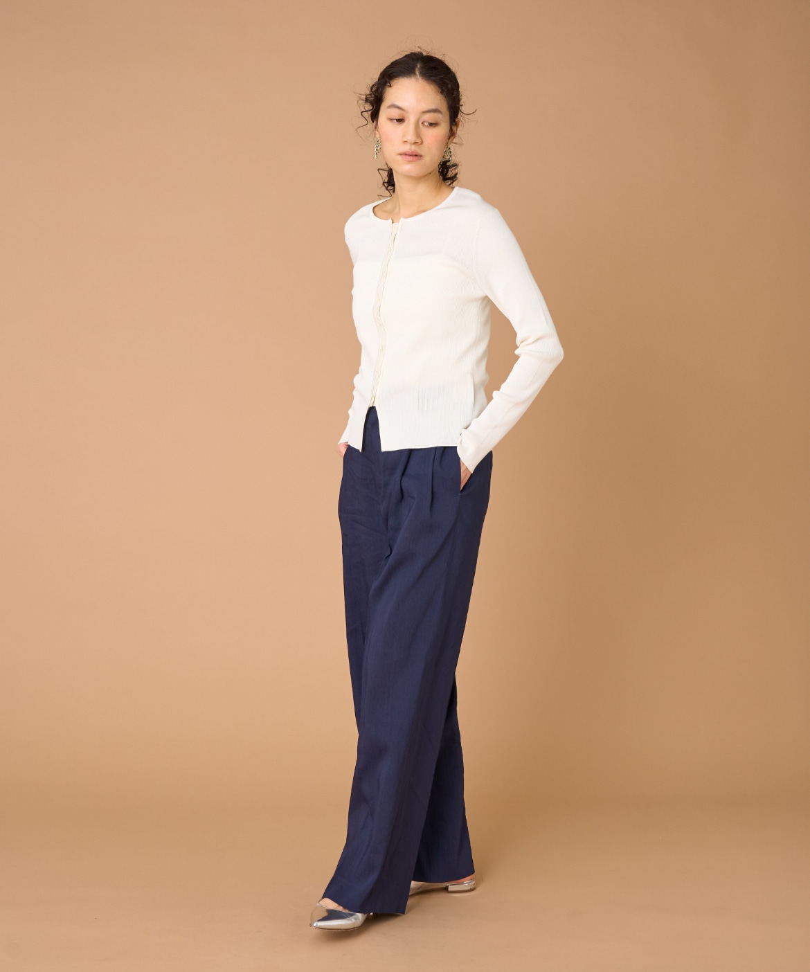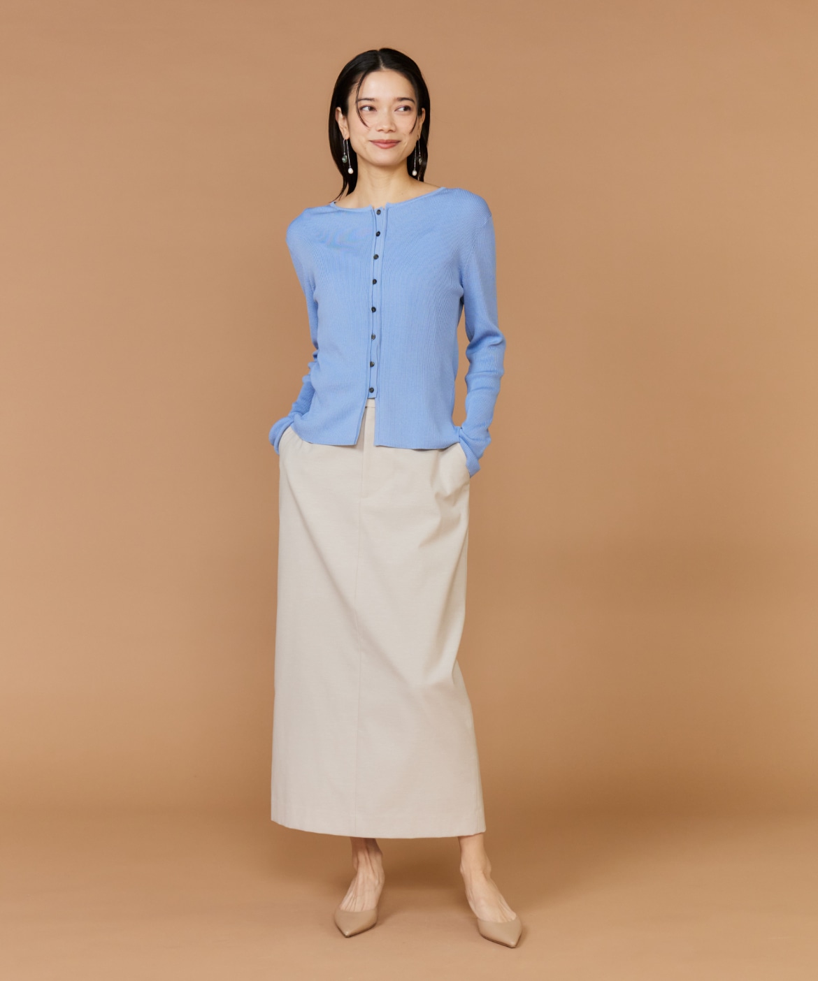 《大きいサイズ》シルクコットンクルーネックリブカーディガン