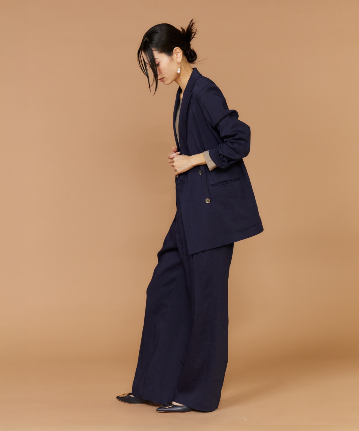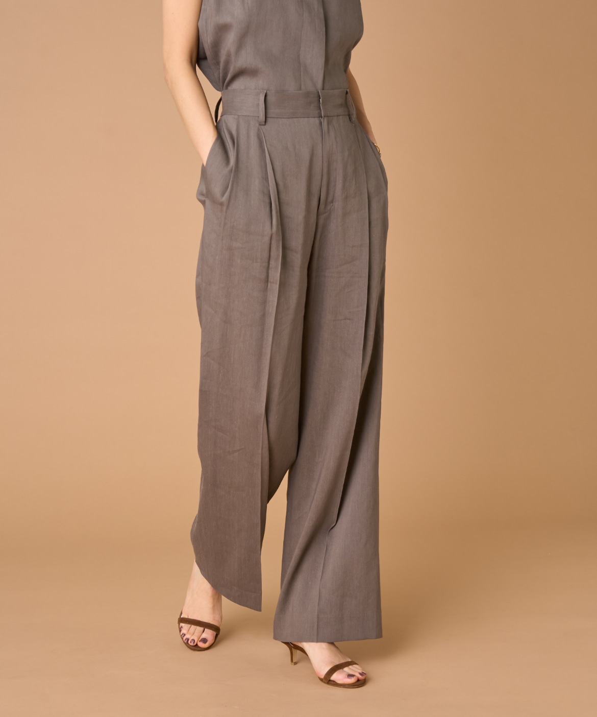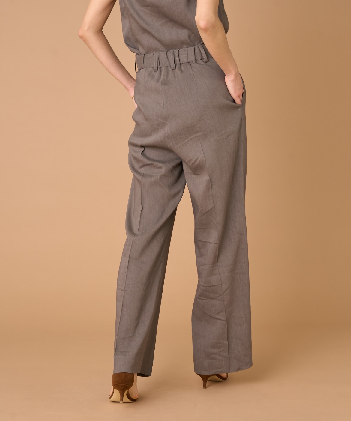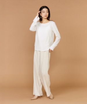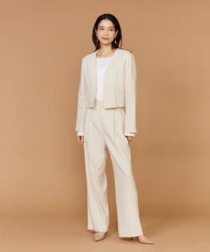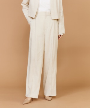 2タックデザインと自然に広がるセミワイドシルエットで分量感がありつつも、ヒップ周りをコンパクトにすることで女性らしいメリハリのあるバランスに。ミニマルな印象でどんなスタイリングにも馴染み、幅広いシーンで活躍してくれる万能なアイテム。小柄な方も高身長な方も綺麗に穿いていただけます。フラットシューズやスニーカーでも美脚になれるパンツです。