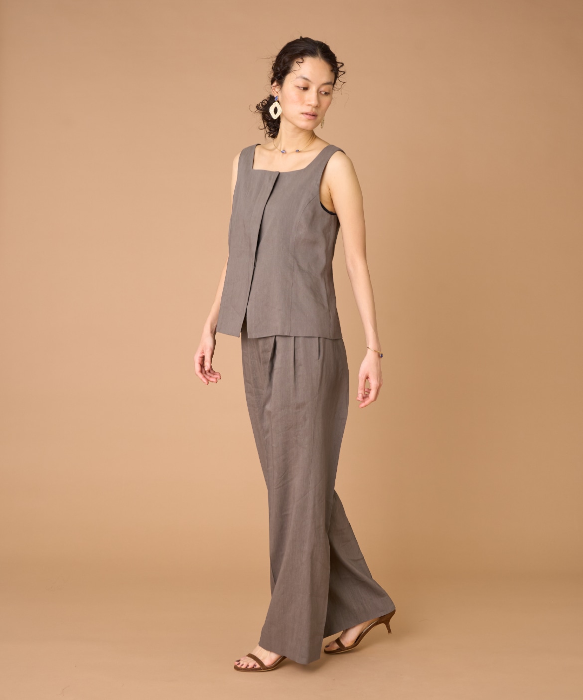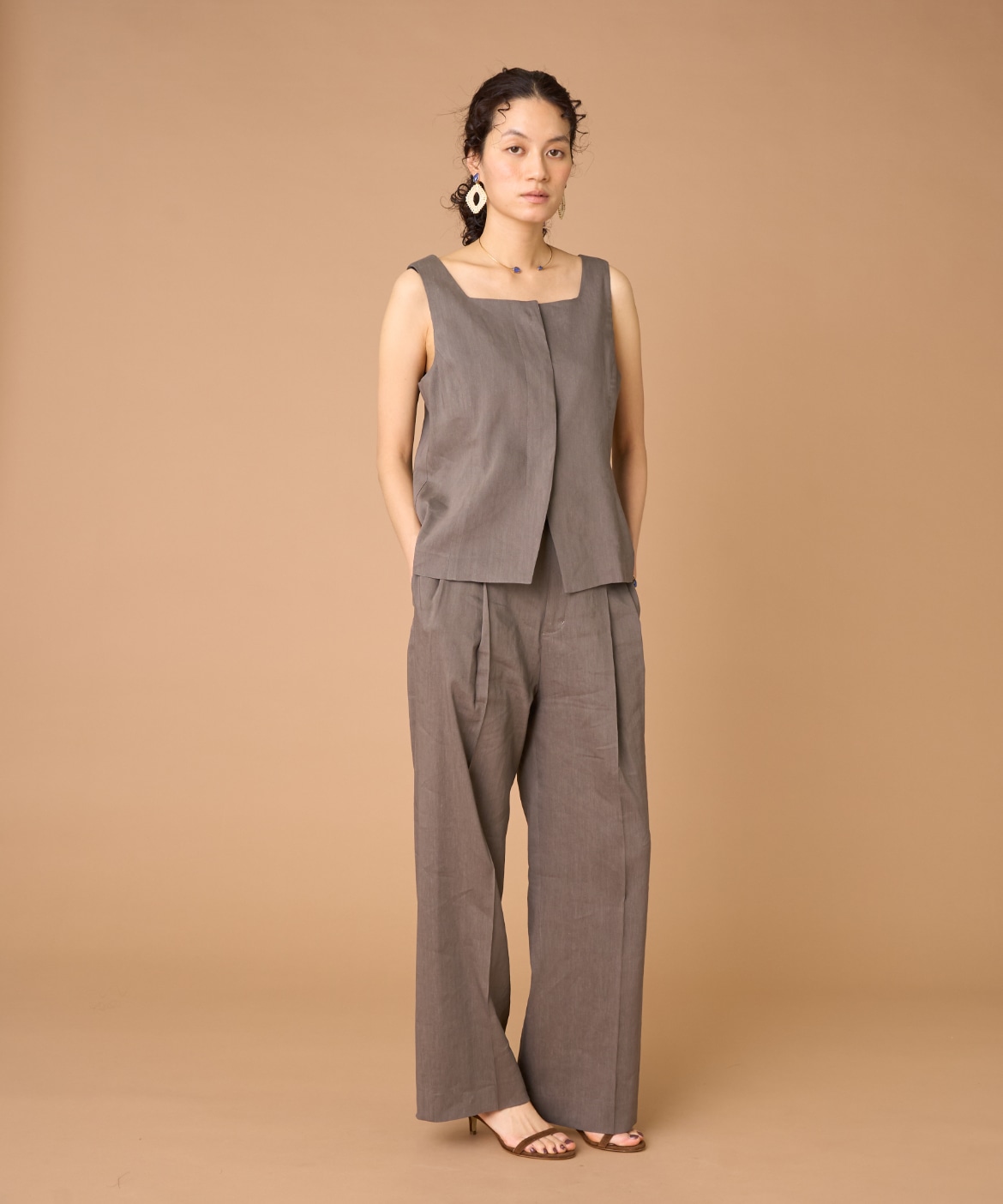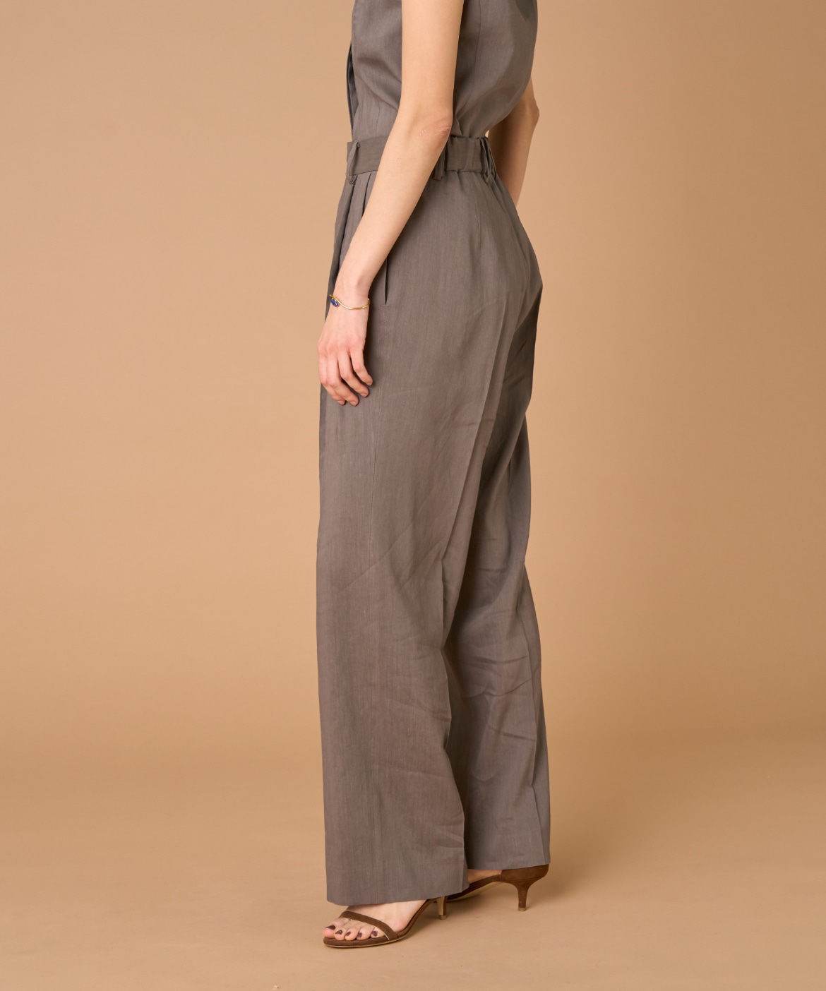 2タックデザインと自然に広がるセミワイドシルエットで分量感がありつつも、ヒップ周りをコンパクトにすることで女性らしいメリハリのあるバランスに。ミニマルな印象でどんなスタイリングにも馴染み、幅広いシーンで活躍してくれる万能なアイテム。小柄な方も高身長な方も綺麗に穿いていただけます。フラットシューズやスニーカーでも美脚になれるパンツです。