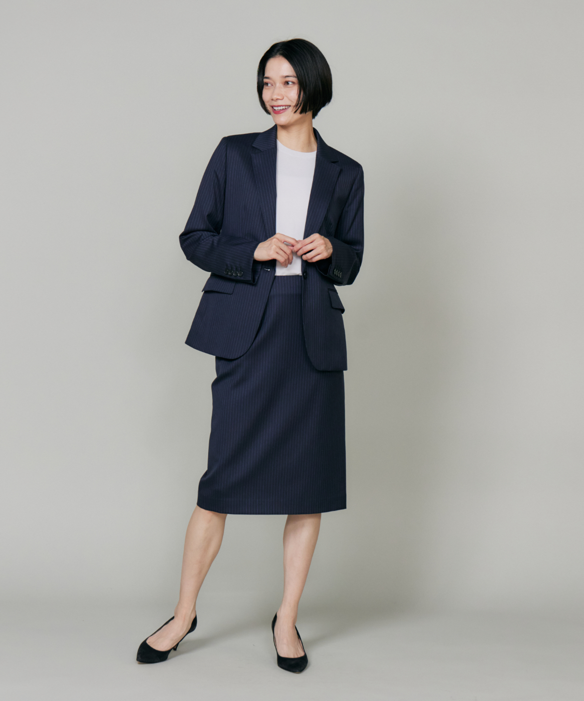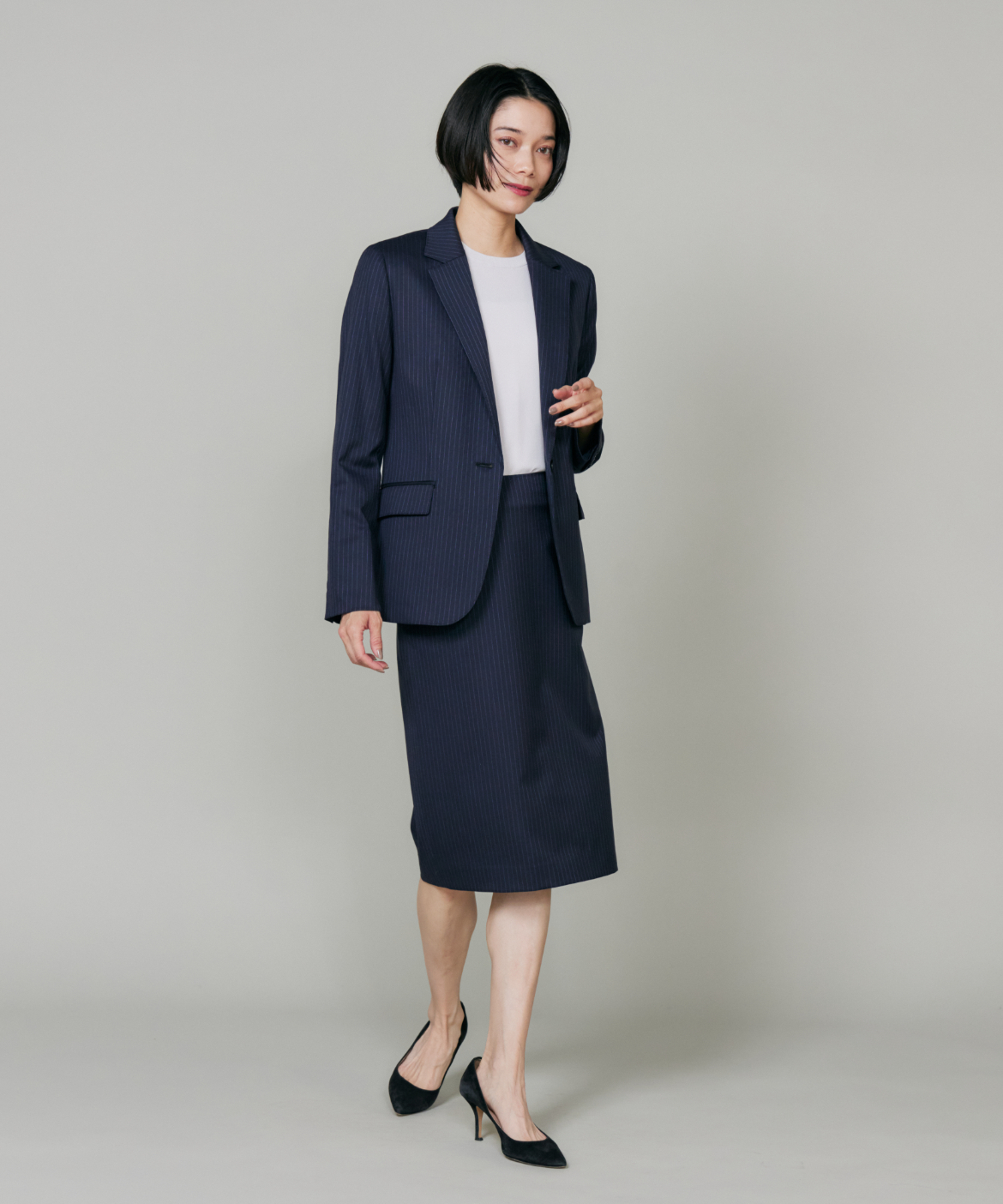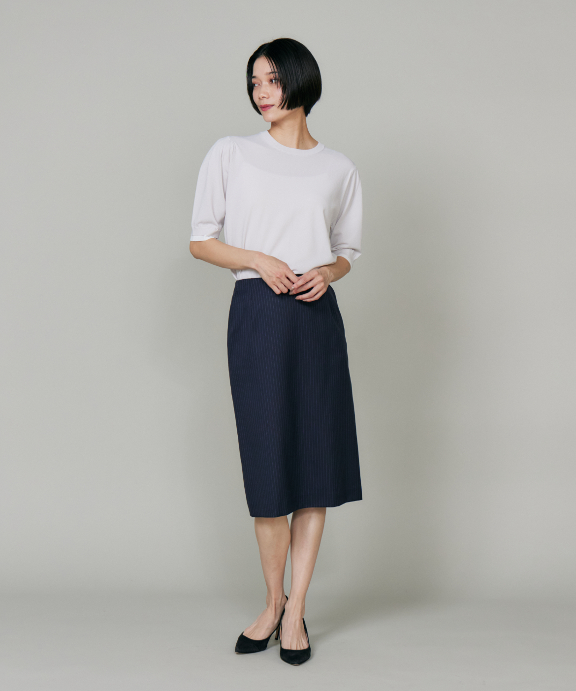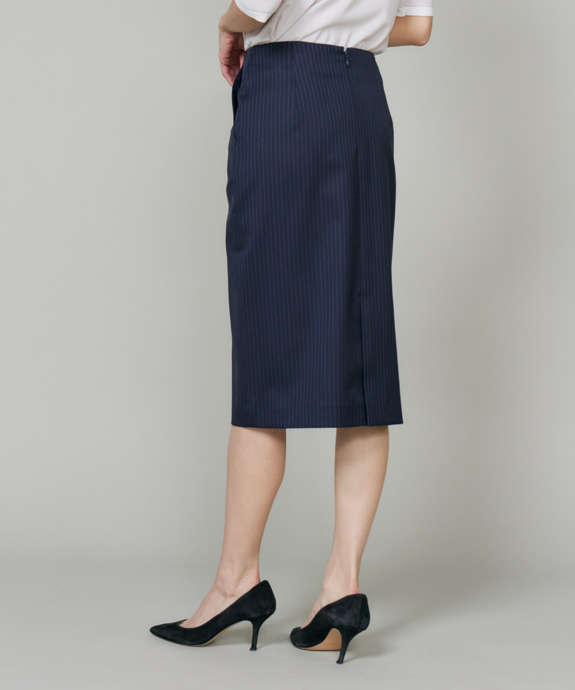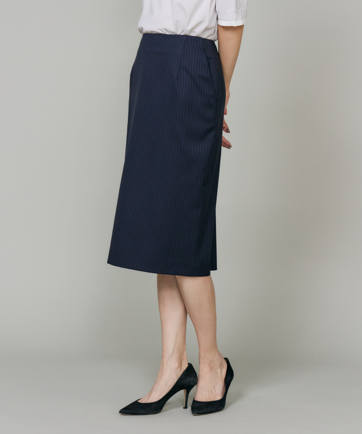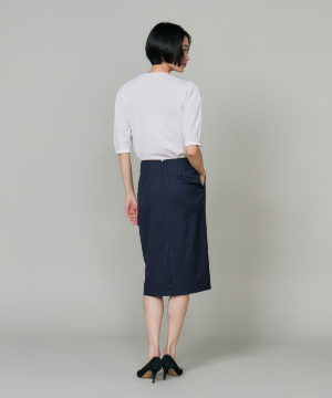 《大きいサイズ》シルクウールストライプペンシルスカート