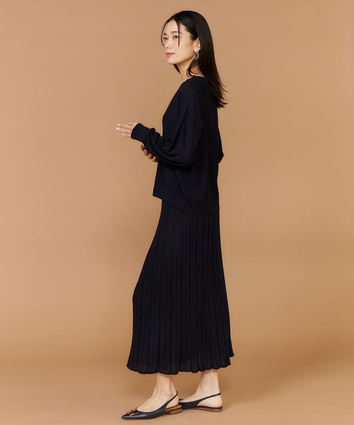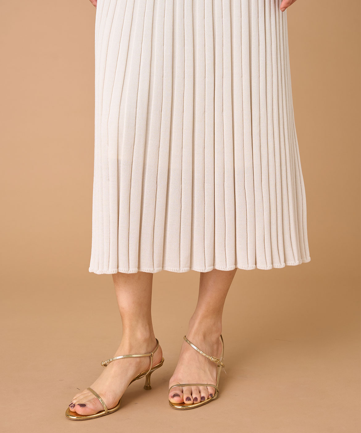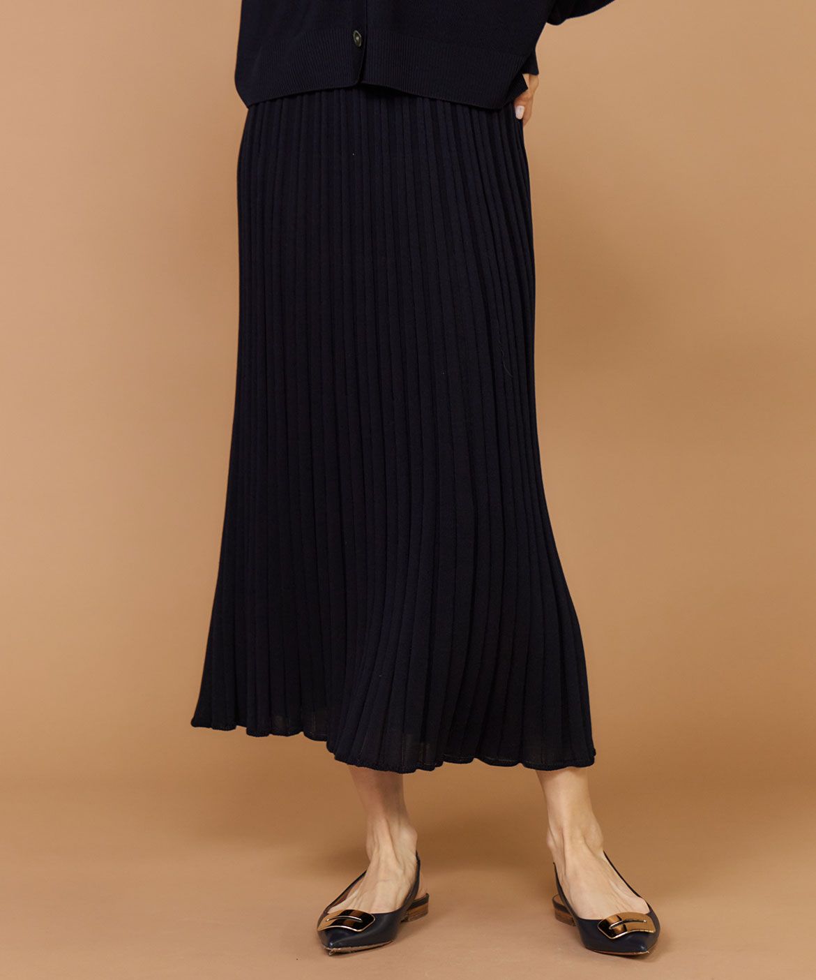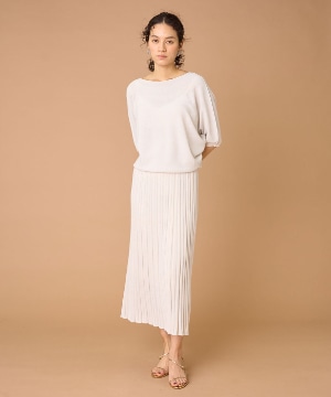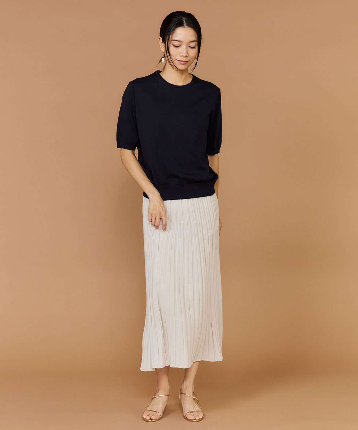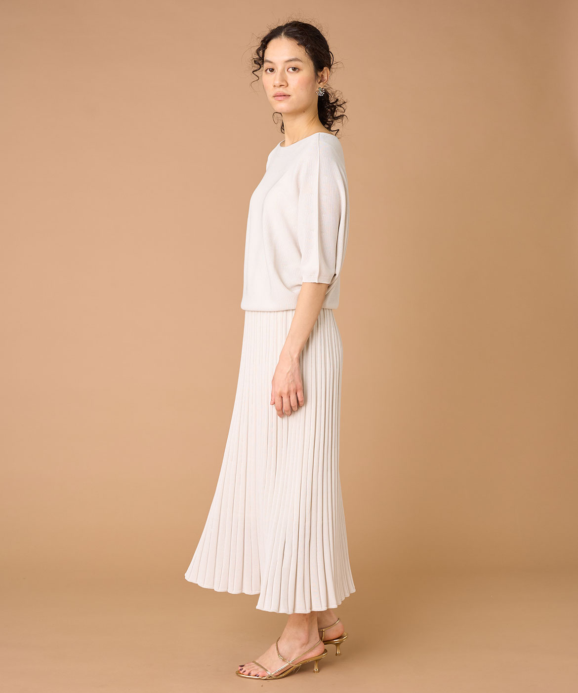 縫い目のないホールガーメントで編み立てられた、たっぷりしたフレアー感がポイントのニットスカート。ウエスト部分まで編み続きになっているため、動きやすく履き心地の良い一枚。女性らしい華やかさと品の良さを両立したスカートです。