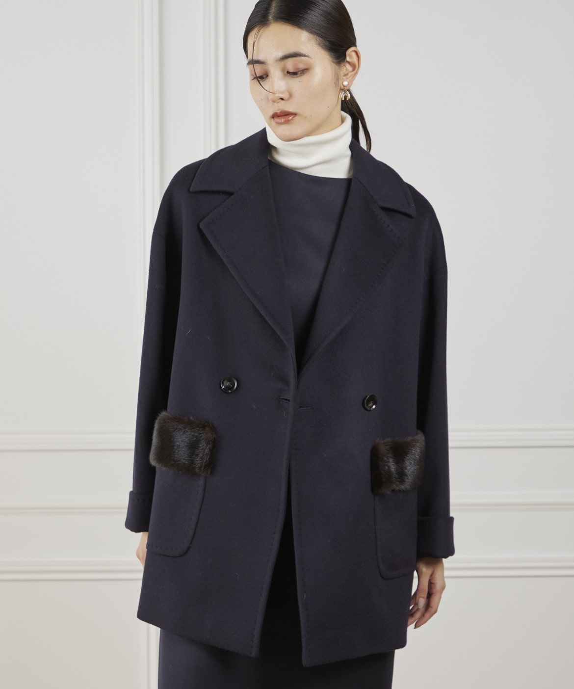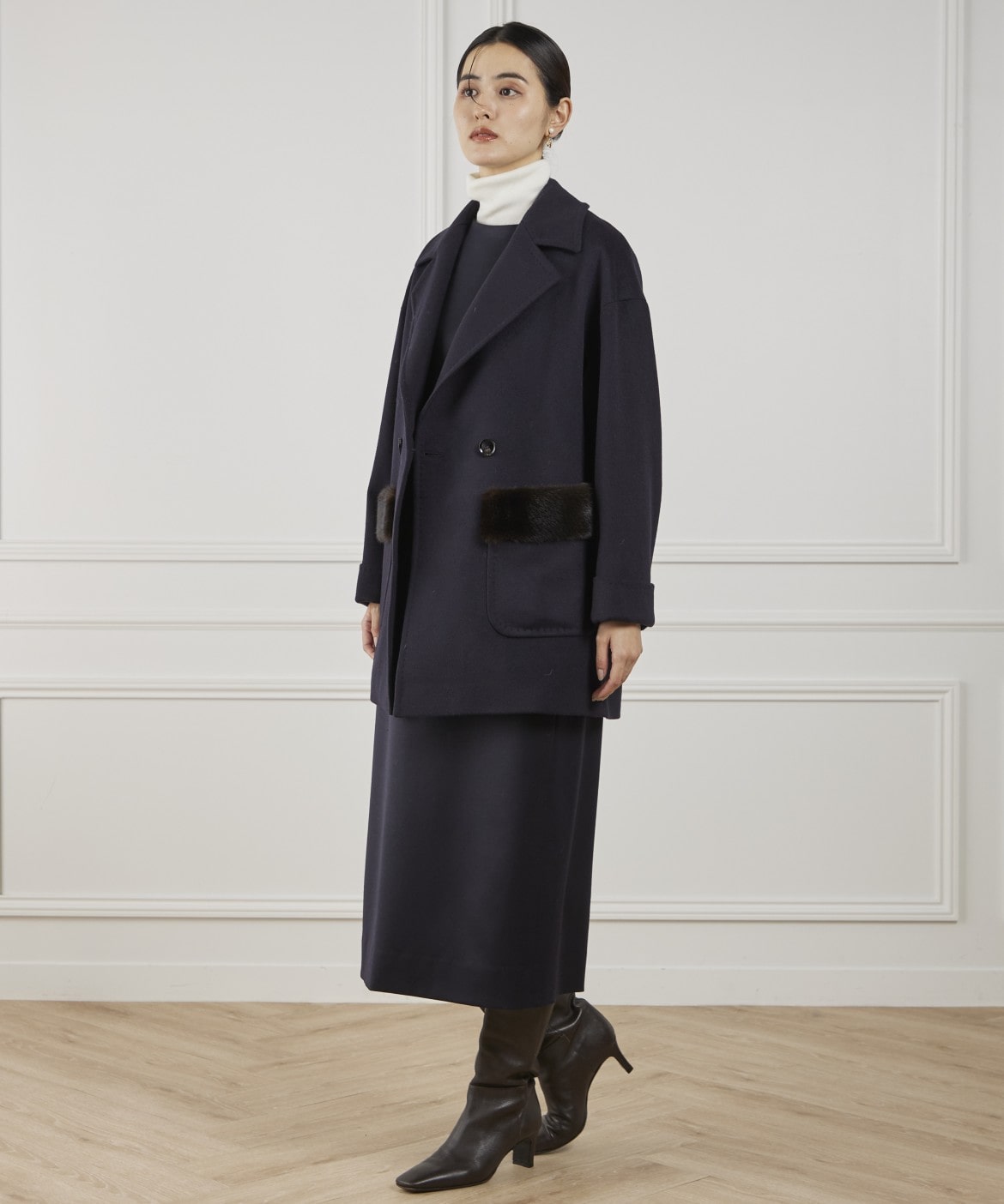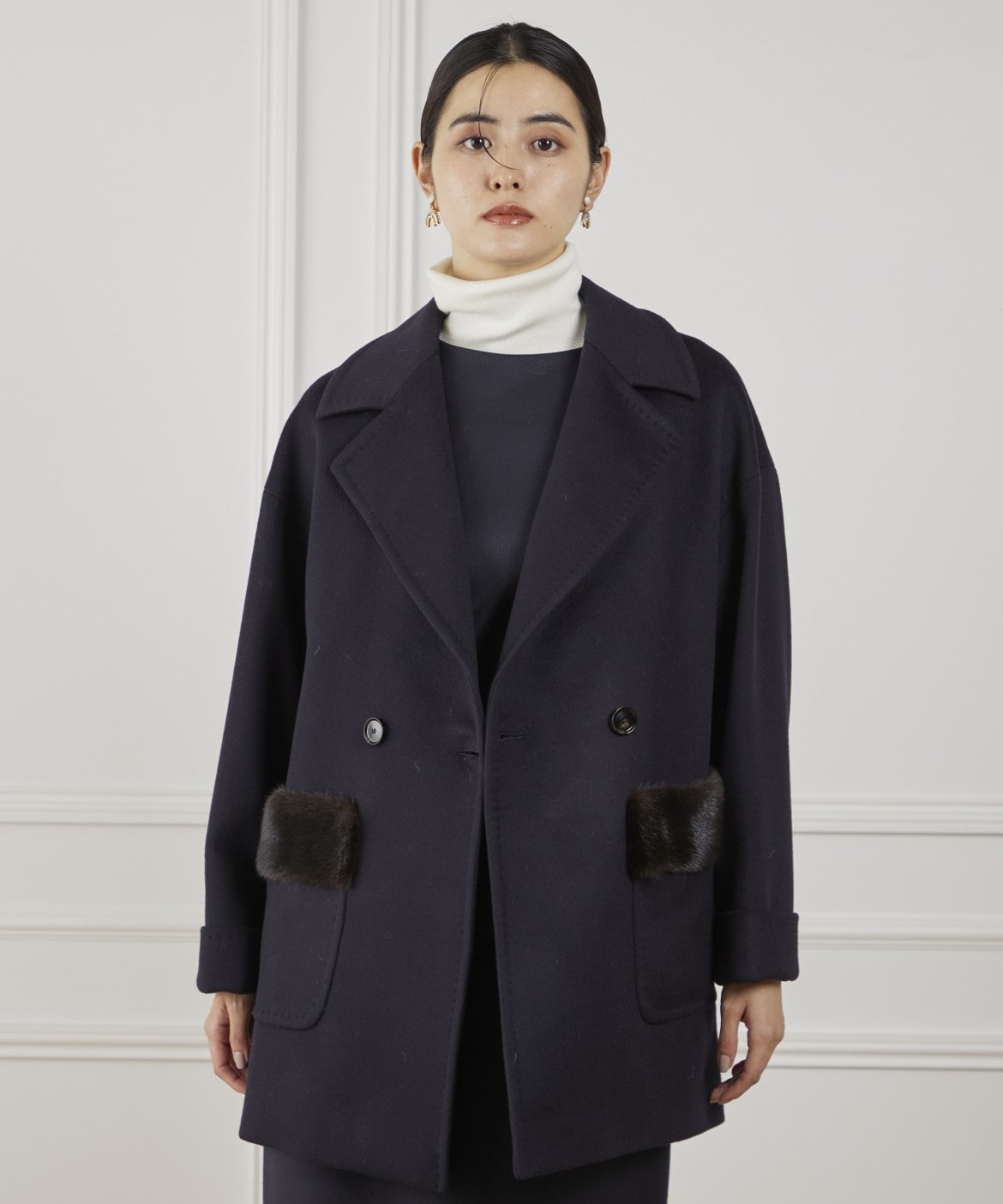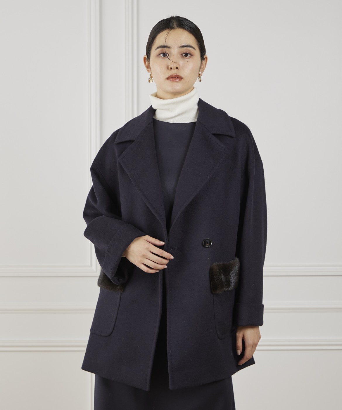 LENOCHI ミンクファーポケットミドルコート