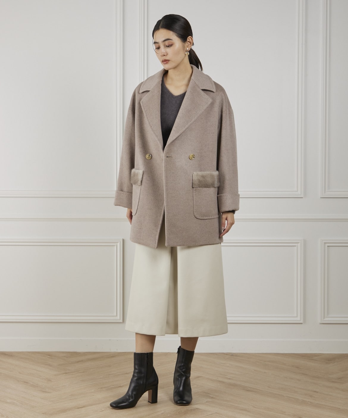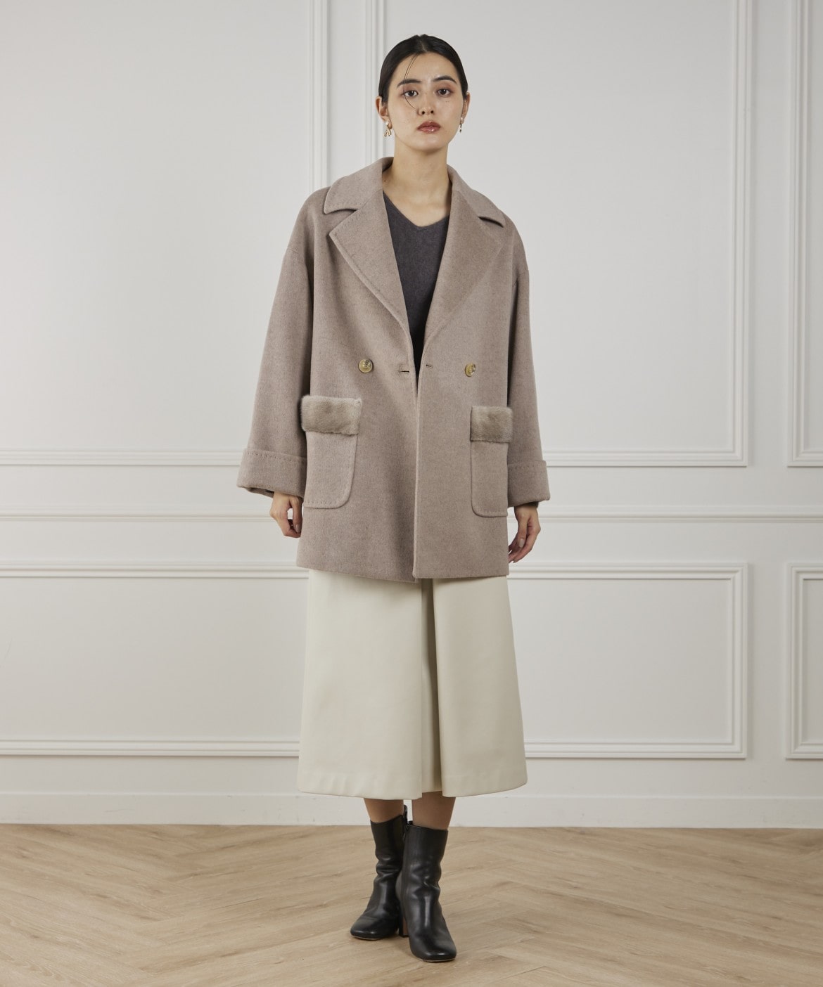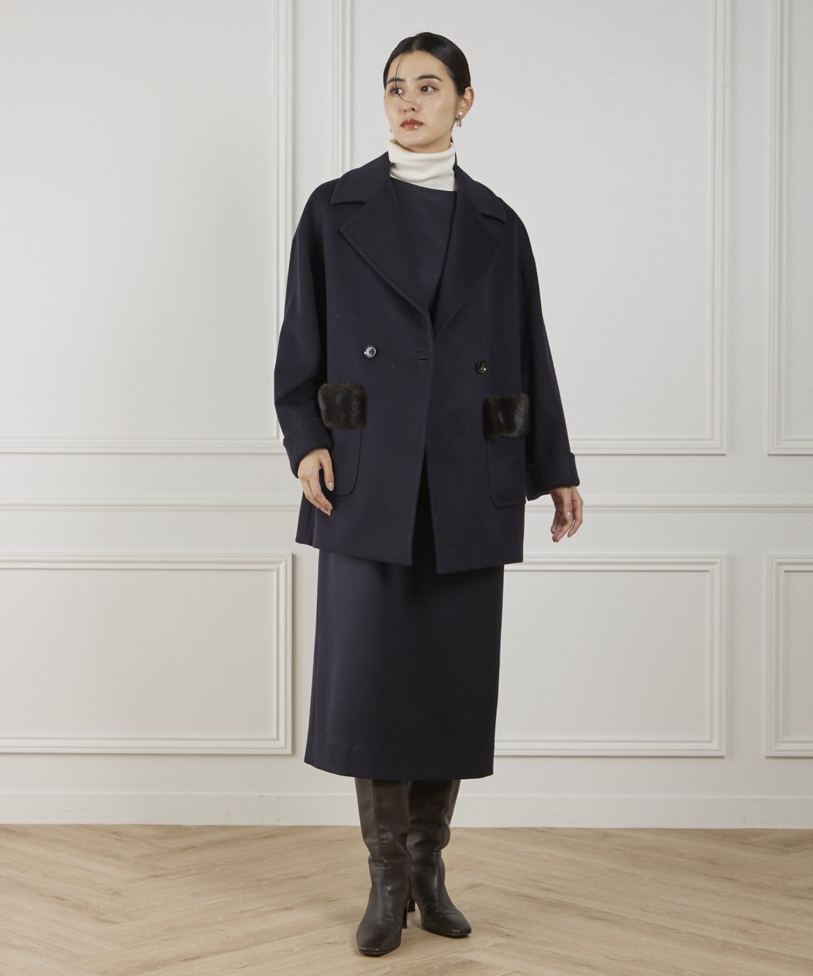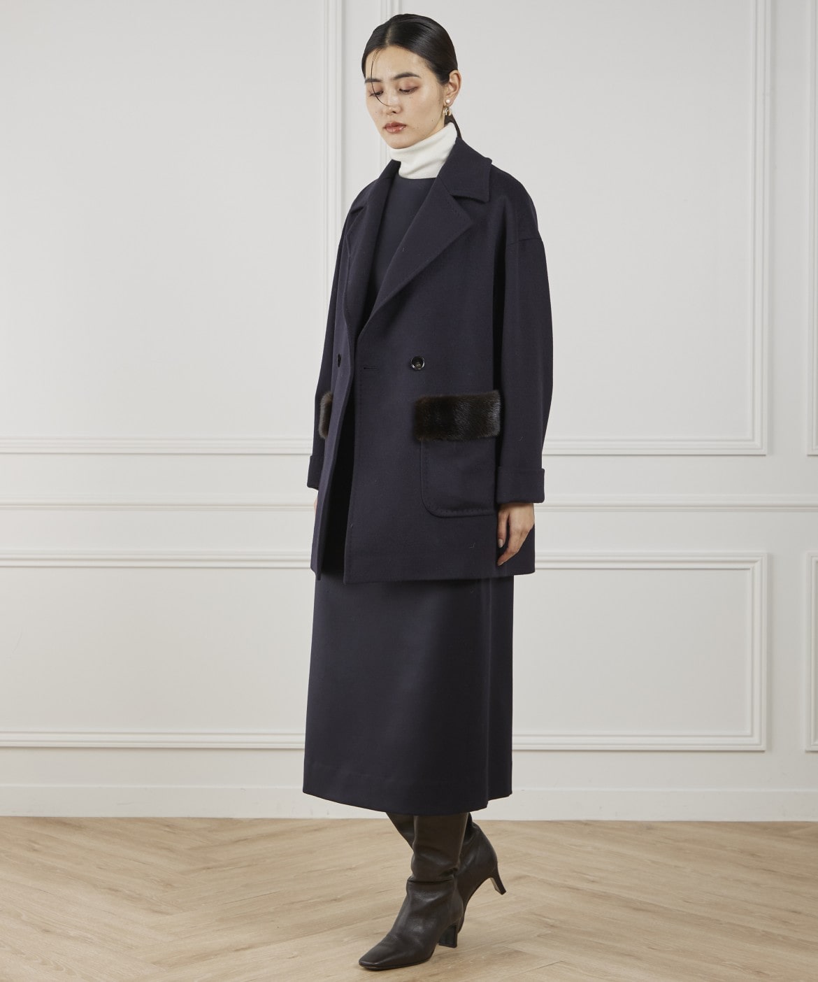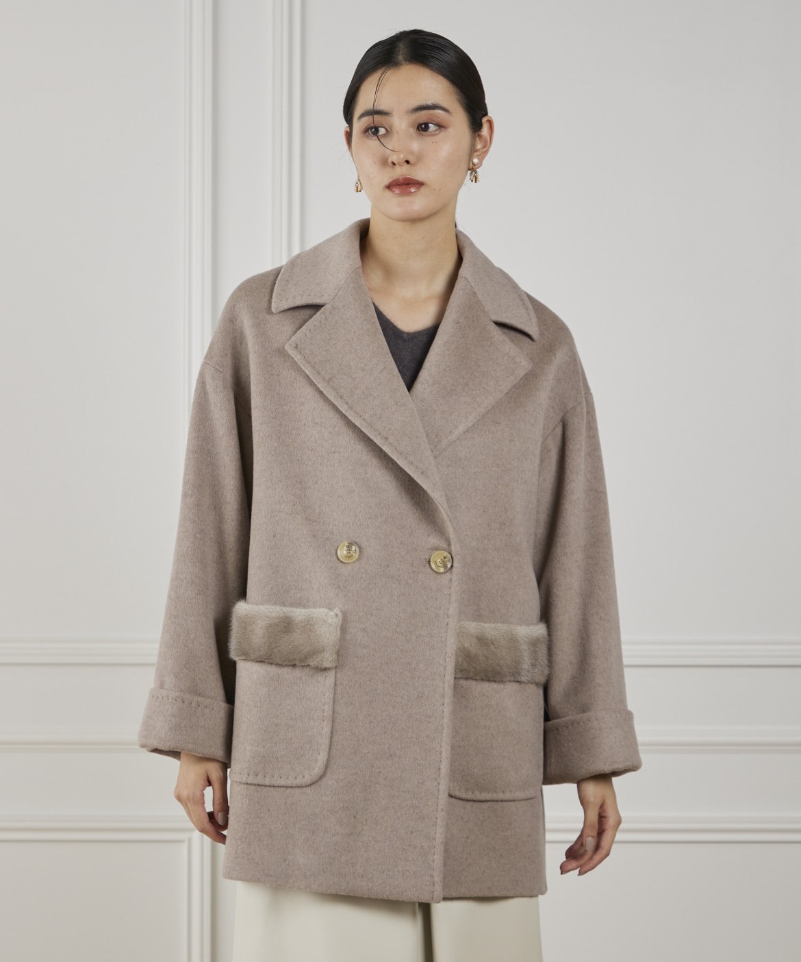 LENOCHI ミンクファーポケットミドルコート